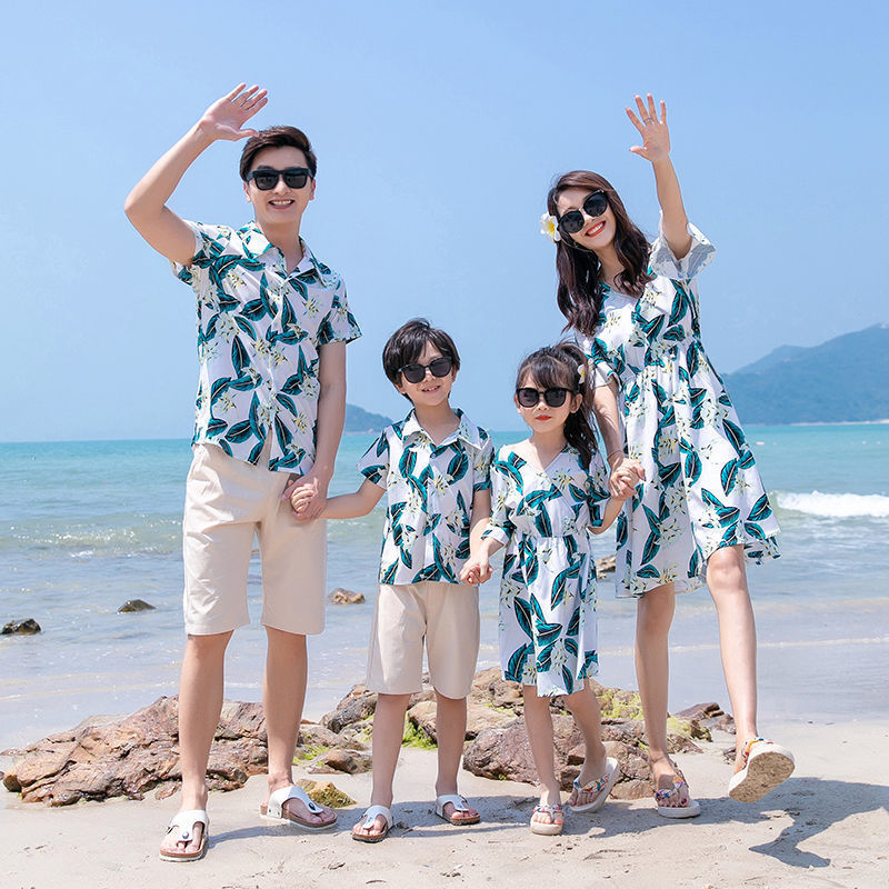A Family Of Three And Four Father And Son Short-sleeved Shirt Suit